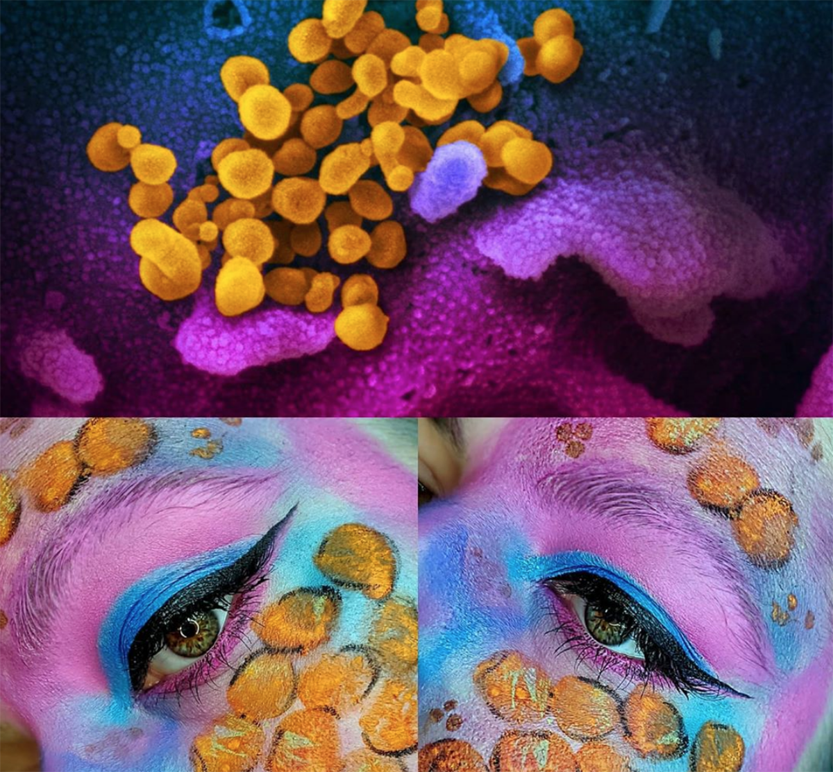 Photo: A makeup interpretation of COVID-19 complete with information from Jenny’s Instagram virus makeup series.
