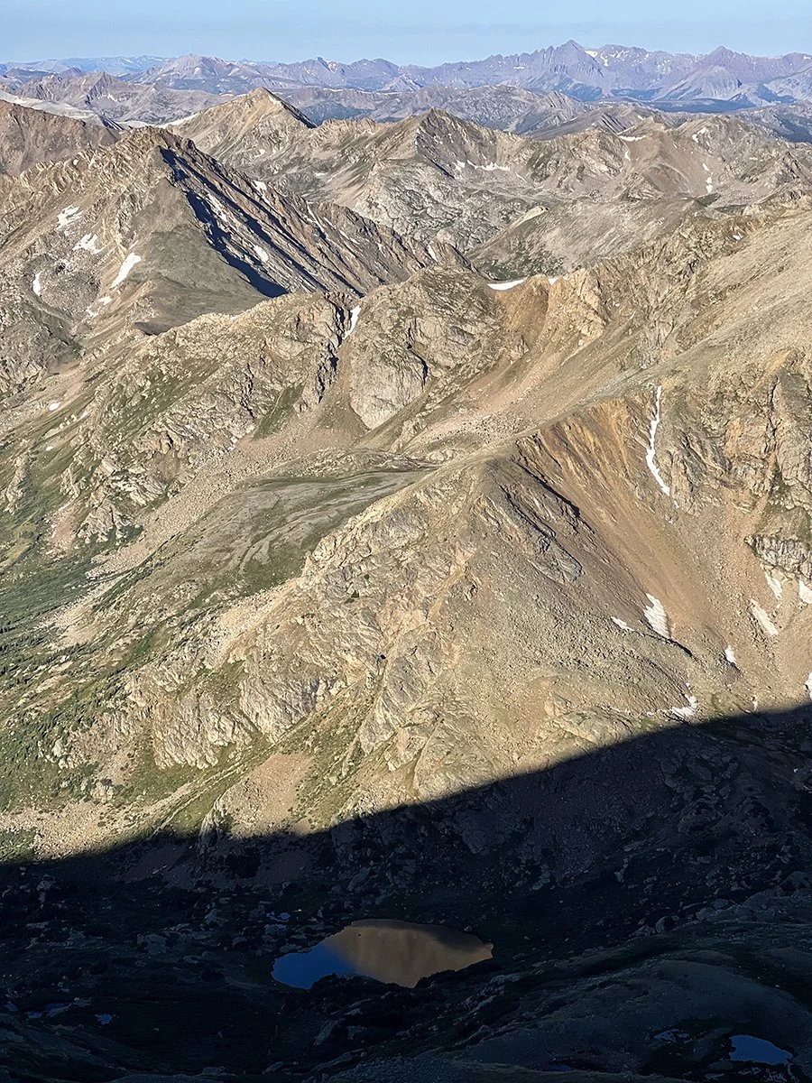 I did Mt Massive first, taking the 14-mile (roundtrip) East Slopes Trail to the peak starting just after 4am with the goal of getting above tree line before sunrise - which was spectacular! After 3 hours and 24 minutes I reached the summit as the first person for the day, enjoying it in solitude for 10-15 minutes before a couple joined me. In total, the hike took 6:32 roundtrip including 40-45 minutes at the summit.